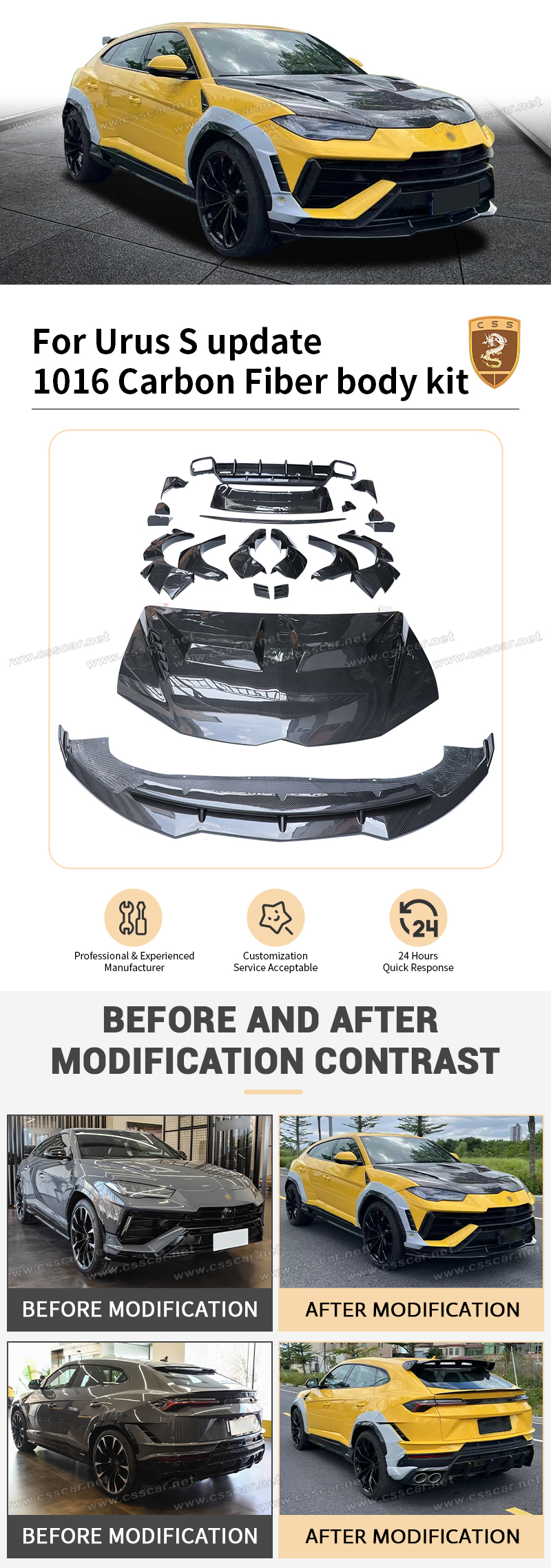 For Lamborghini Urus S update 1016 Carbon Fiber body kit